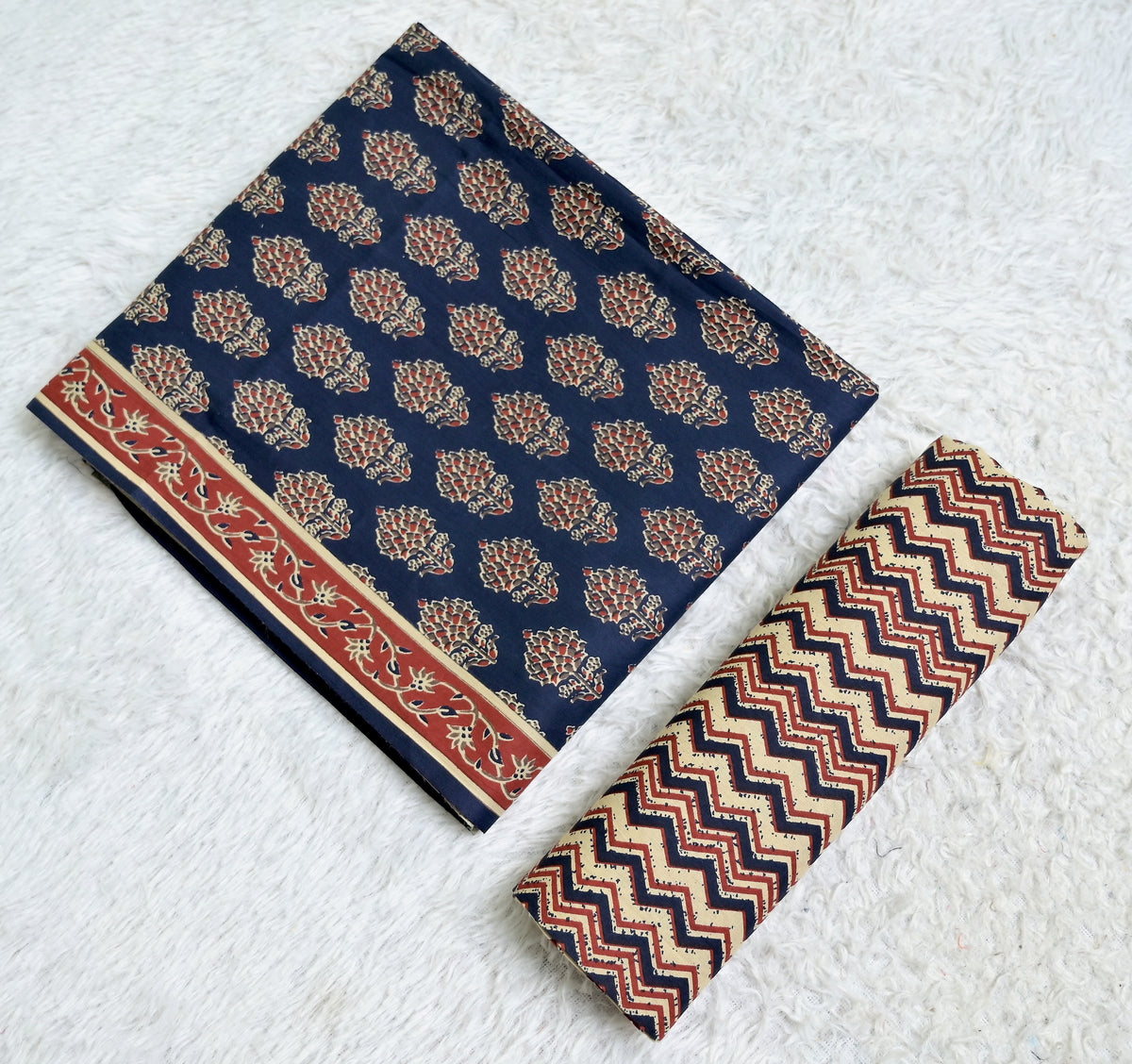 Indigo and Rust Printed Cotton 3-Piece Unstitched Dress Material AJ101