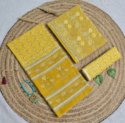 Yellow Paisley Cotton Unstitched 3-Piece Dress Material